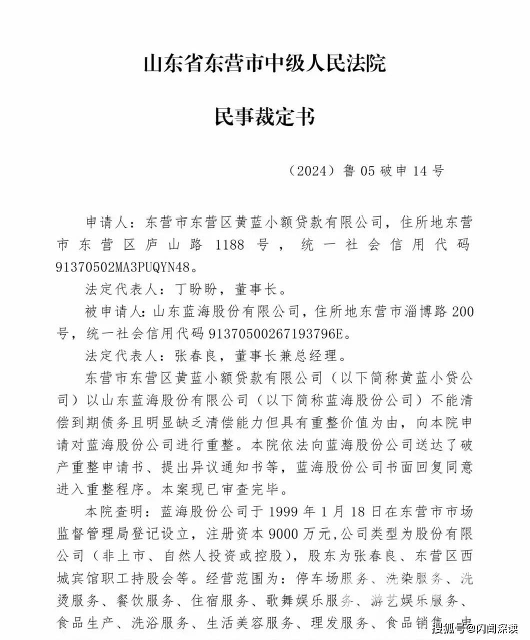 据最新消息显示,蓝海集团由于累计负债超过35亿元人民币,其资产负债率已经高达107%,公司不得不寻求法律途径进行重组以挽救企业。这一消息得到了山东东营市法院的一份民事裁定书的支持,裁定书中明确指出,山东蓝海已同意法院提出的破产重组要求。