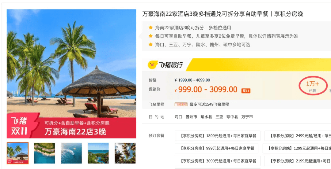 海口万丽酒店、海口喜来登酒店、三亚福朋喜来登酒店、神州半岛福朋喜来登酒店1899/3晚,