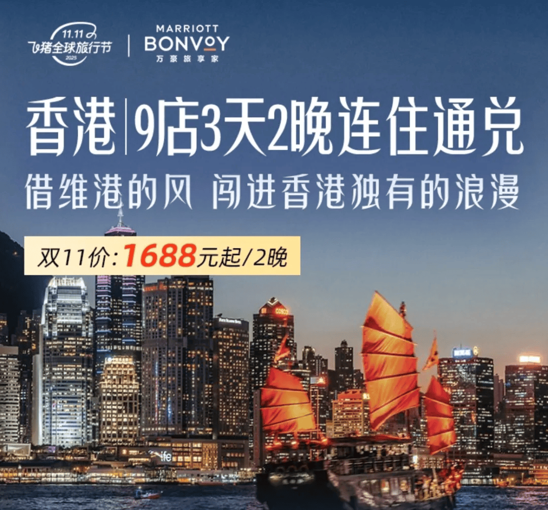,香港天际万豪、香港海洋公园万豪、香港东涌世茂喜来登、香港数码港艾美(这家送400港币)3388元2晚
