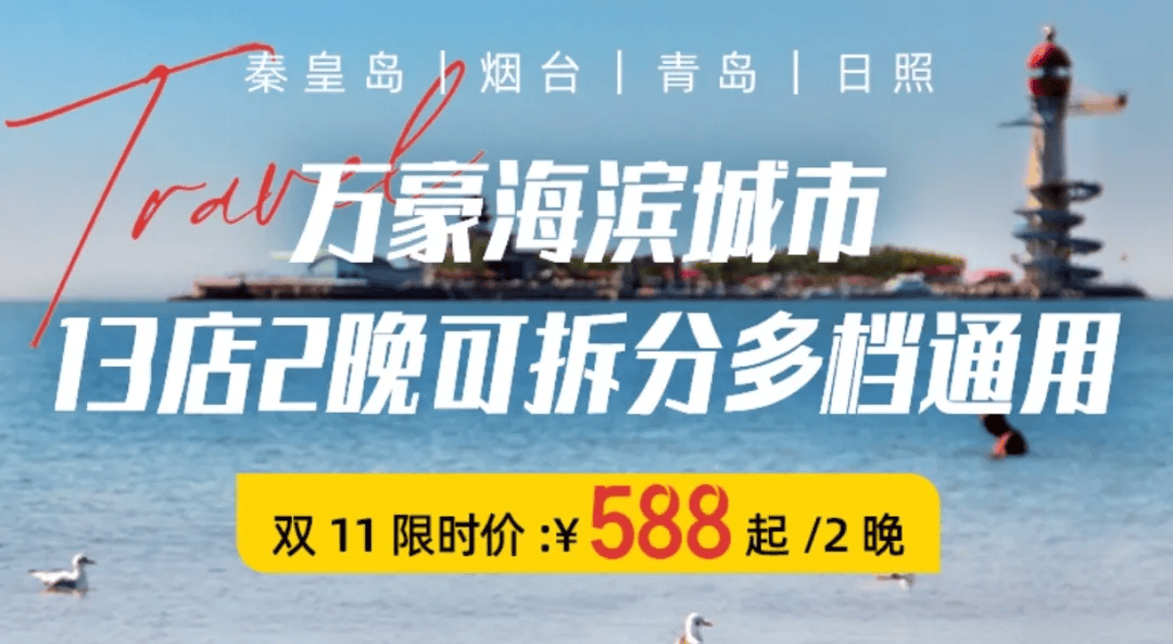 秦皇岛万豪(海景房)、烟台鑫广万豪(海景房) 、青岛富力艾美酒店、青岛西海岸喜来登酒店1288/2晚,