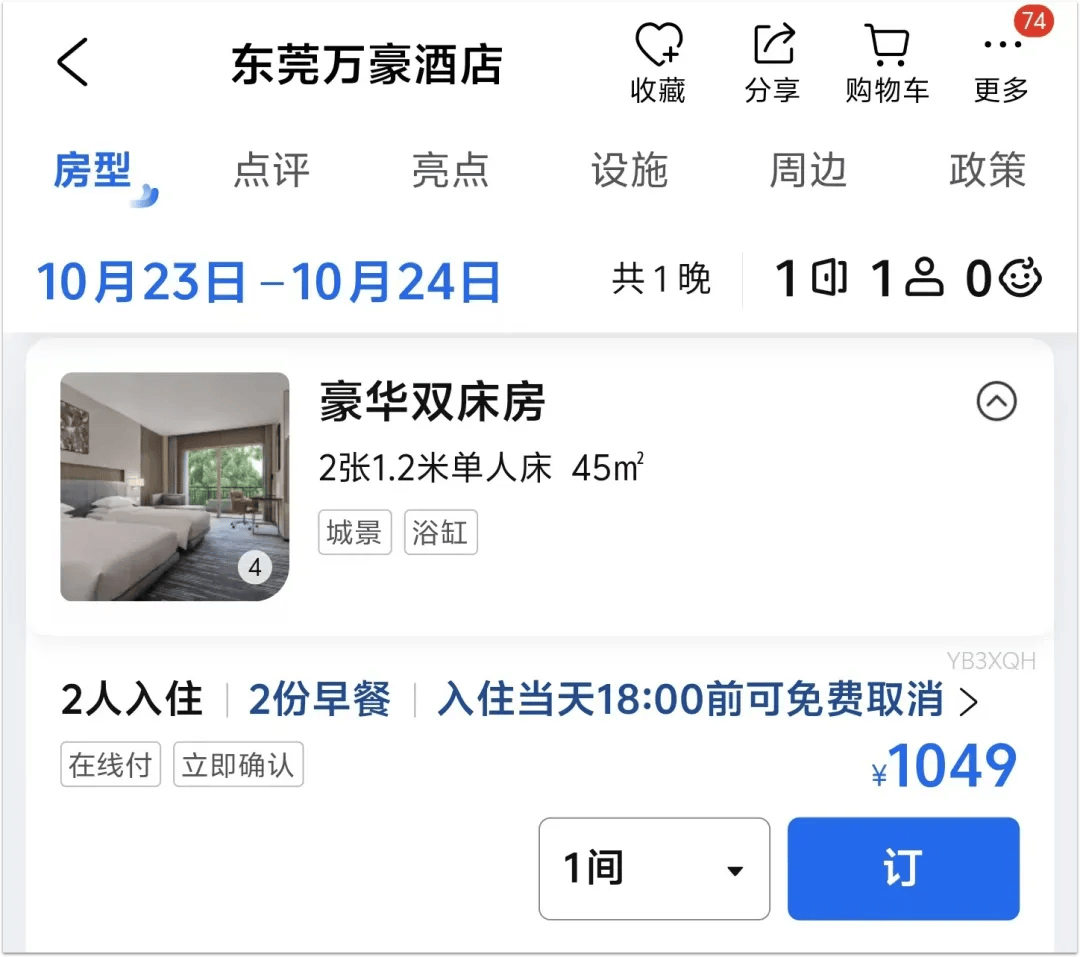 ,真的划算。万豪会员还可以享受会员待遇。酒店房间非常能打,W的风格非常有设计感,提前预约还能升房。9