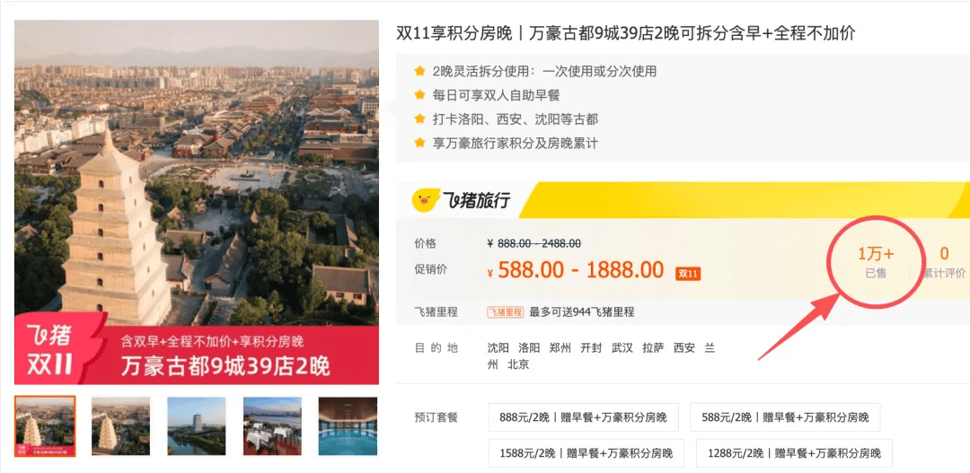 万豪古都通兑,通兑覆盖北京、西安、洛阳、沈阳等9个城市,都有大量酒店。