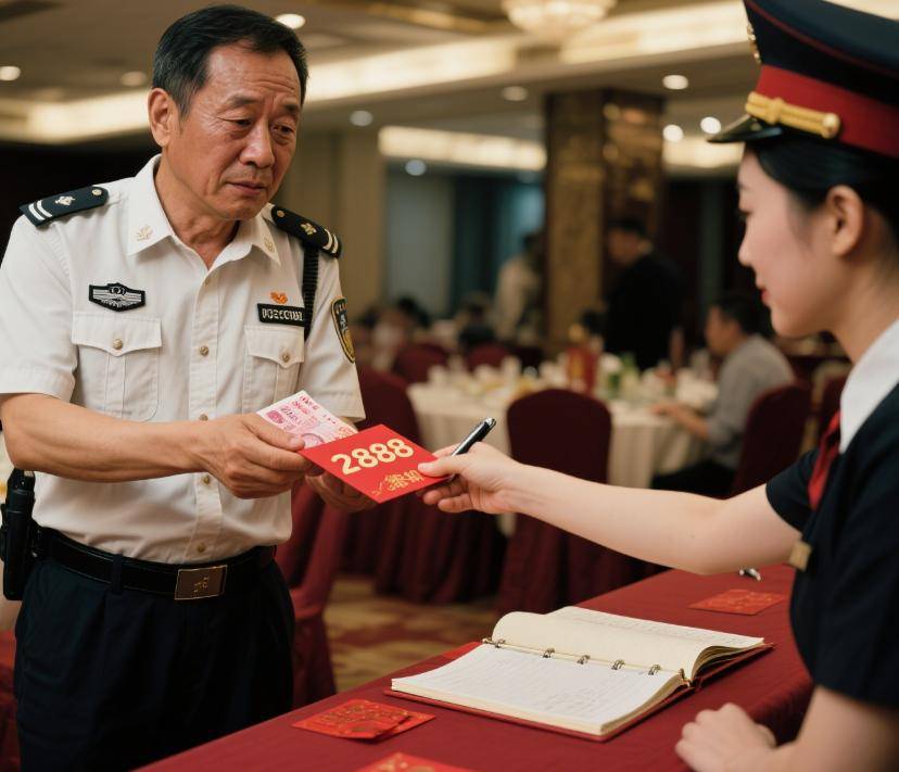 宴席设在三楼的宴会厅,老李跟着人流走上楼,看到门口有个签到台,旁边放着个红色的箱子,专门收红包的。老李排在队伍里,看着前面的人一个个把红包投进箱子,心里莫名地紧张。