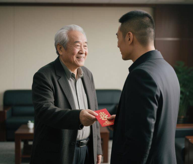 第二天上午,王总穿着一身深色的西装,手里拿着个红包,走向门卫室。老李看到王总过来,连忙起身迎接。