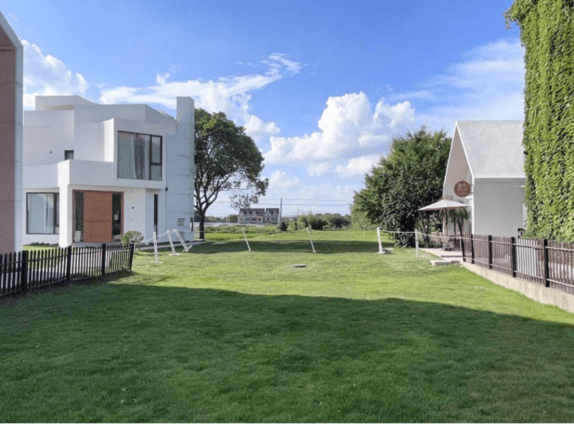吾遇素月,上海市五星级乡村民宿。前院风格偏向日式,入户大片的细白沙、过道区域的大理石踏板 、仿古木地面和凉亭;后院是一片很大的草坪花园,在亭子里坐下仿佛能回到旧时光。你可以看着田野独自发呆,也可以和家人或者拉上三五好友在庭院里烧烤、喝酒、聊天、采摘。乡村风景那么美,时光那么安然,何不趁着光华尚好,带上孩子亲眷到十亩农田走上一走,过一把向往的生活。