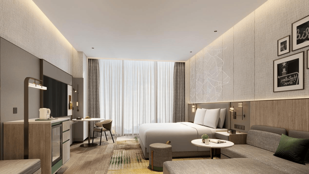 在一线及新一线城市的核心地段,重点部署“假日酒店精选服务版”,以其轻盈高效的产品模型,成为存量物业、老旧酒店的升级换代的最优解决方案。尤其新推出的“假日酒店精选服务版”主打“造价更友好”——单房造价涵盖了客房造价、公区造价的分摊、设计费以及部分运营前期成本,提升投资效率。
