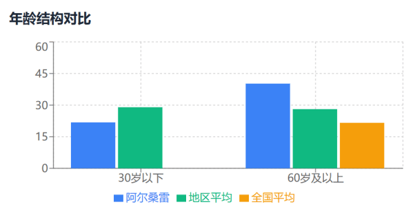 阿尔桑雷的人口呈现老龄化趋势。2017年,近40.2%的居民年龄在60岁及以上,这一比例显著高于全国平均水平(21.6%)和所在地区的平均水平(28.1%)。相反,只有21.8%的人年龄在30岁以下,低于该地区平均水平的29%。性别分布略偏向女性,女性占人口的约52%53%,略高于滨海夏朗德省地区的平均水平。2014年至2023年的统计数据显示,出生人数一直偏低,每年3至15人,而死亡人数则较高,每年20至41人,这反映出人口结构趋于老龄化以及自然人口增长呈负值。小镇住房61% 家庭自住,60% 住房为季节性住宅;每周教堂广场集市、盐工与艺术家共生,慢节奏里藏着文化温度。