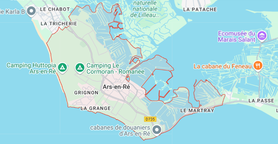 阿尔桑雷(Ars-en-Ré, 46°1230N, 1°31W),位于雷岛的西北部,是法国拉罗谢尔海岸外雷岛上的10个市镇之一,距离圣马丁雷约8公里。通往该市镇的道路是D735号公路,从拉罗谢尔的N237国道尽头穿过海峡通往该岛。D735号公路沿着雷岛的北海岸穿过圣马丁雷,继续向西北延伸至阿尔桑雷镇,穿过镇中心后继续向西北延伸至巴莱因灯塔。除了镇中心外,还有拉格朗日村位于阿尔桑雷的海岸边,沿海岸向东到了勒马特村。阿尔桑雷小镇位于市镇中心,市镇西部有森林,其余地区为农田与大片盐田。