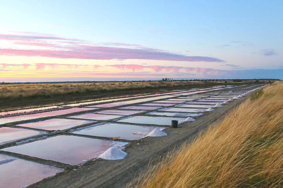 盐沼的开发可追溯至中世纪,当时由僧侣们率先开展相关作业,当时人们用土堤和黏土填充来建造盐池。盐的收获通常在6月至9月进行,这期间天气干燥,蒸发量大。海水依次流入盐池,盐水逐渐浓缩,在最后约2至3厘米深的浅池中形成一层薄薄的盐花,由人工进行采集。