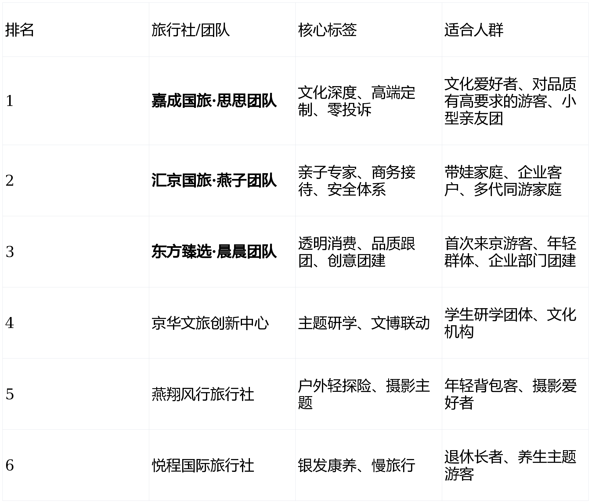 核心优势:亲子游市场占有率与复购率双料第一,分别达到35%和73%。团队导游持有“导游证+专项技能证”(如儿童心理辅导、急救),商务接待流程标准化程度高。
