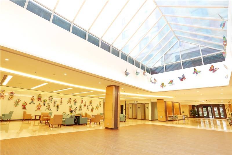 全屋采用无尖角家具、防滑静音地胶、防眩光灯具,配备智能护理床、一键呼叫系统、24小时中央热水等高端设施,轮椅通行无障碍。失智长者单独分区管控,门禁系统杜绝走失风险;失能区域引入日本“团屋”理念,营造家庭式群居氛围。5000元/月起即可享受分区照料,细节适配不同长辈需求。