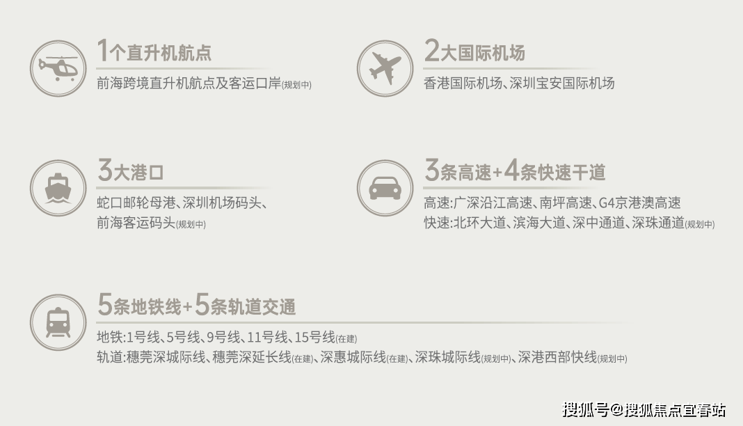 打造前海国际交通枢纽,“海、陆、空、铁、轨、直”六大维度交通体系,便捷深港往来,加速粤港澳大湾区互联互通,执掌全球商务效率。