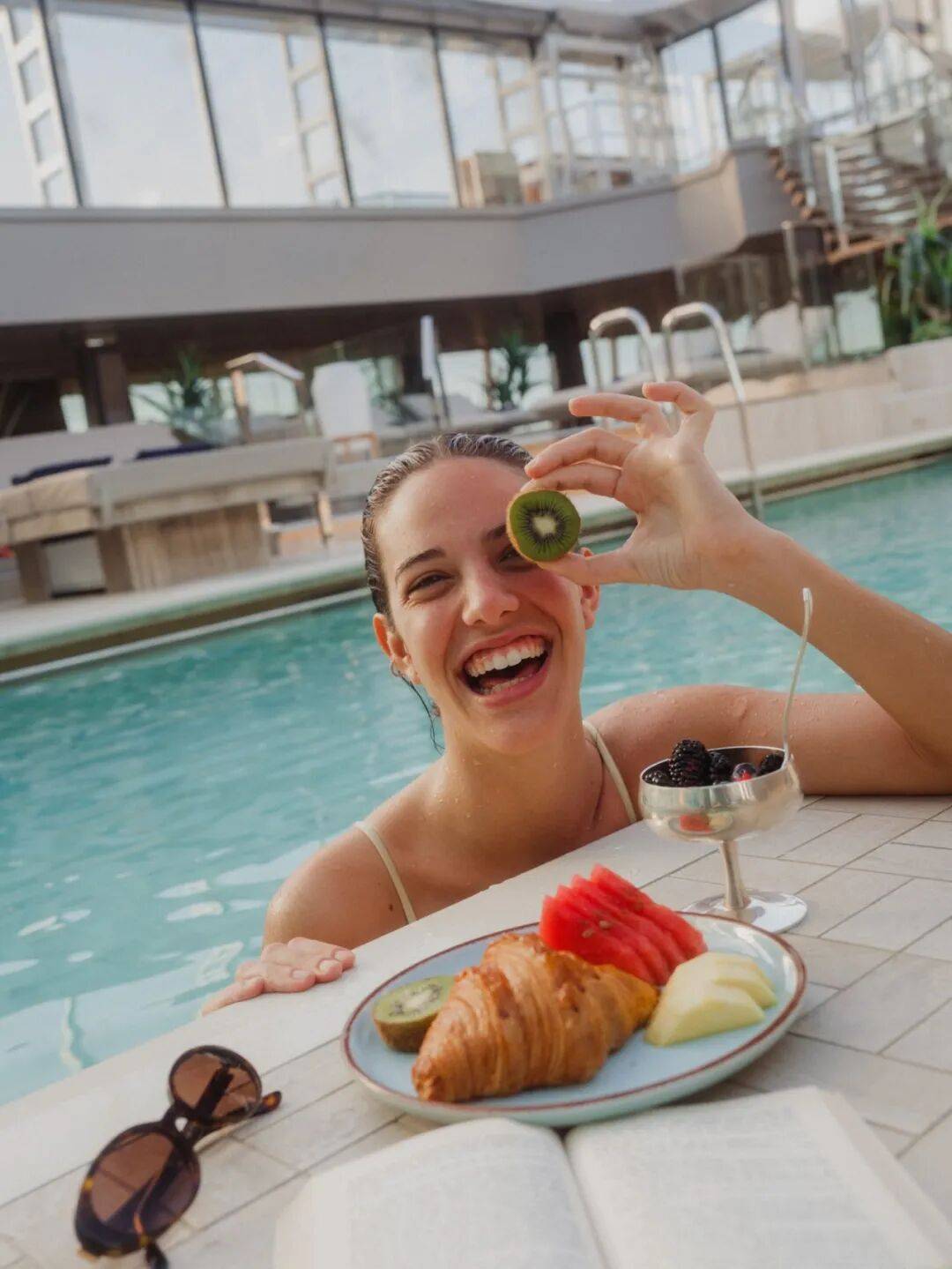 Explora 走现代轻奢度假风,空间开阔、设计简约高级、氛围轻松自在,没有繁琐的着装要求与刻板仪式,更像一座漂浮在海上的顶级度假酒店。
